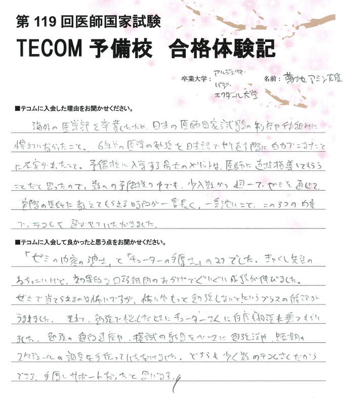 (1)通学時間を勉強時間に充てられます。仮に、往復1時間(国試まで6ヶ月)とした場合、120時間を勉強時間を増やすことができます。